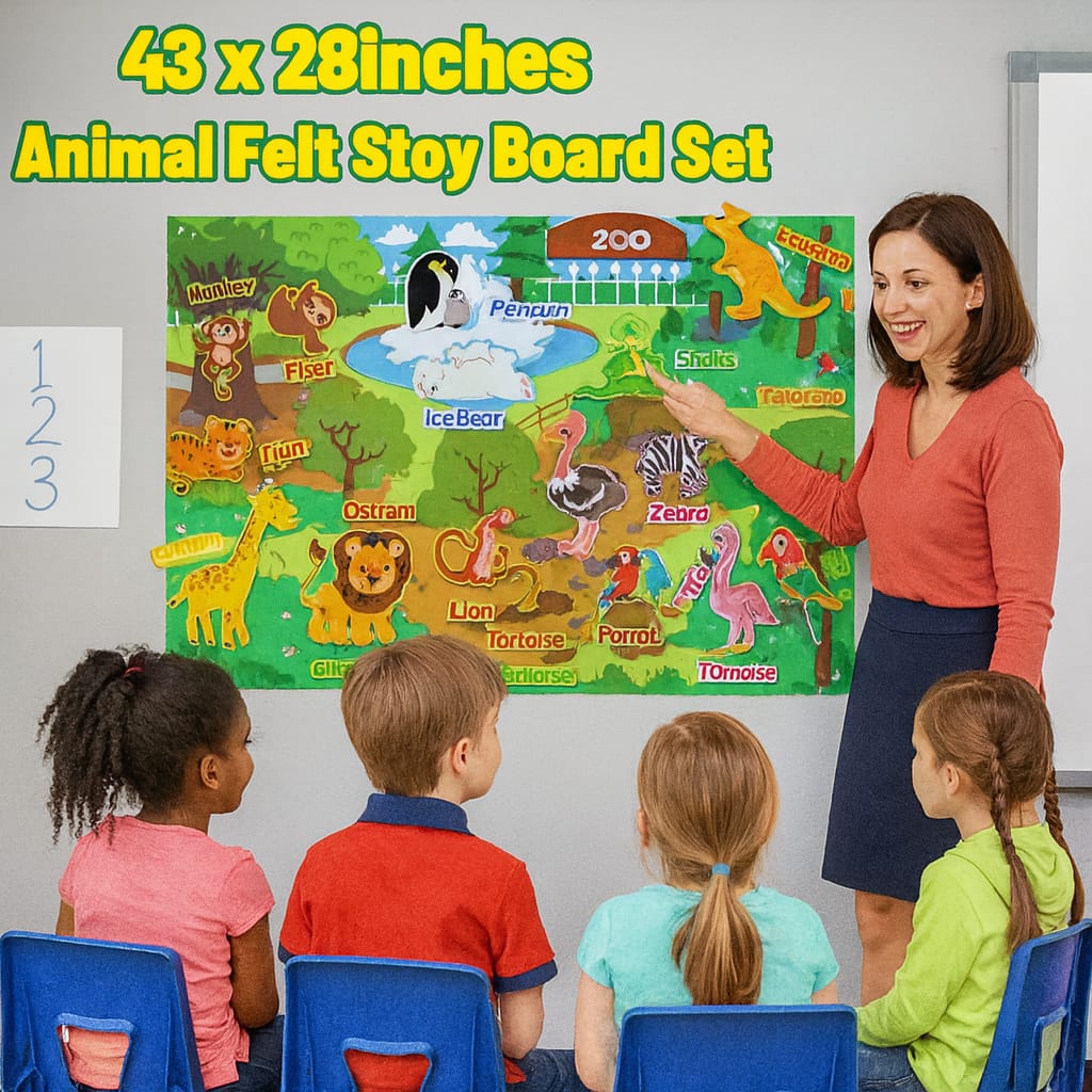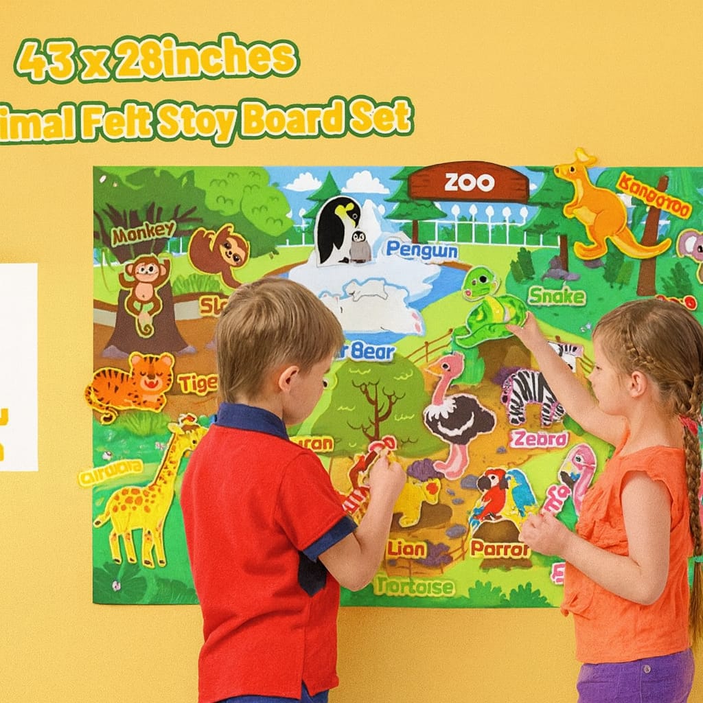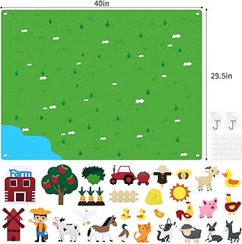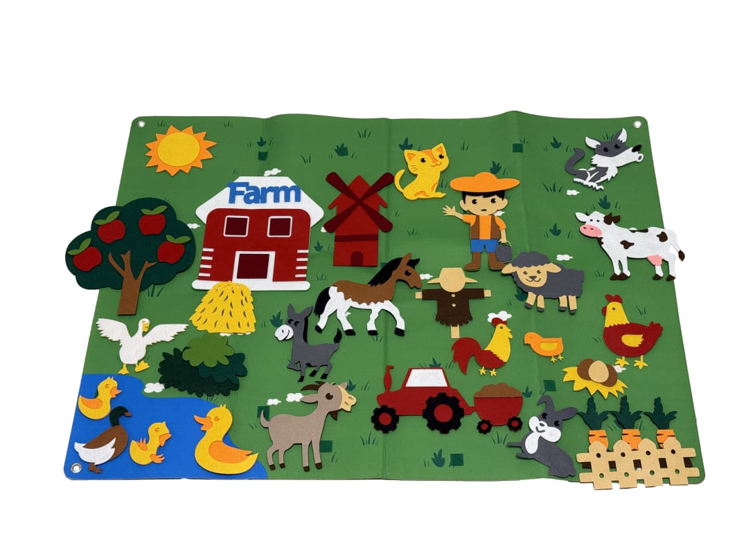 لوحة تعليمية تفاعلية من اللباد للأطفال – لعبة مونتيسوري لتنمية الخيال واللغة (74×110 سم)